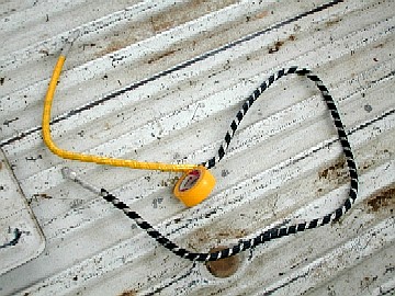 最近、方向性がずれてきているような気がする。軽トラに手を入れだすと、いろいろ考えてしまう。リンクにもある軽トラック研究会の掲示板に刺激されて、アーシングを行いました。元々アーシングはする予定で、1年以上前にケーブルは購入済みにでした。しかもプラスの配線も変える予定で2本用意してあります。 そのプラス側のケーブルはそのままでは被覆が振動などで破れてショートが怖いので、スパイラルチューブを巻き、さらにビニールテープで補強しました。左の写真が作成中ですが、怪しいケーブルが出来上がっていきます。 |