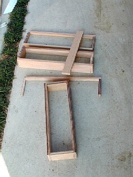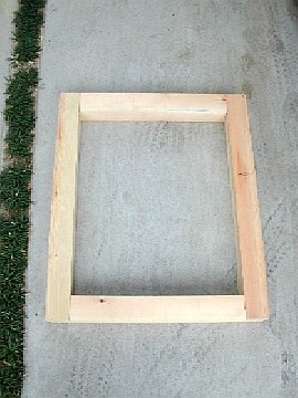 作った枠を配置してみました。この枠には、あらかじめ測量した結果、コンクリートをどこまで入れるかを鉛筆で線引きしておきます。 |
