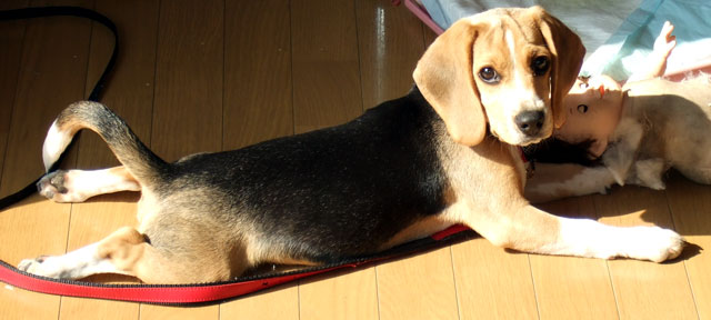 戌年の去年、1人(1匹)、家族が増えました。ビーグルのキオラ(♀)です。