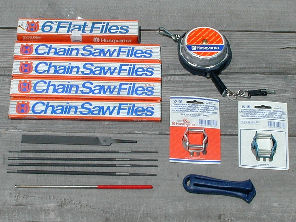 チェーンピッチ .325”用 丸ヤスリ 4.8mm×2本 平やすり×1本 ハンドル×1個 デプスゲージ付きガイドローラー×1個 |