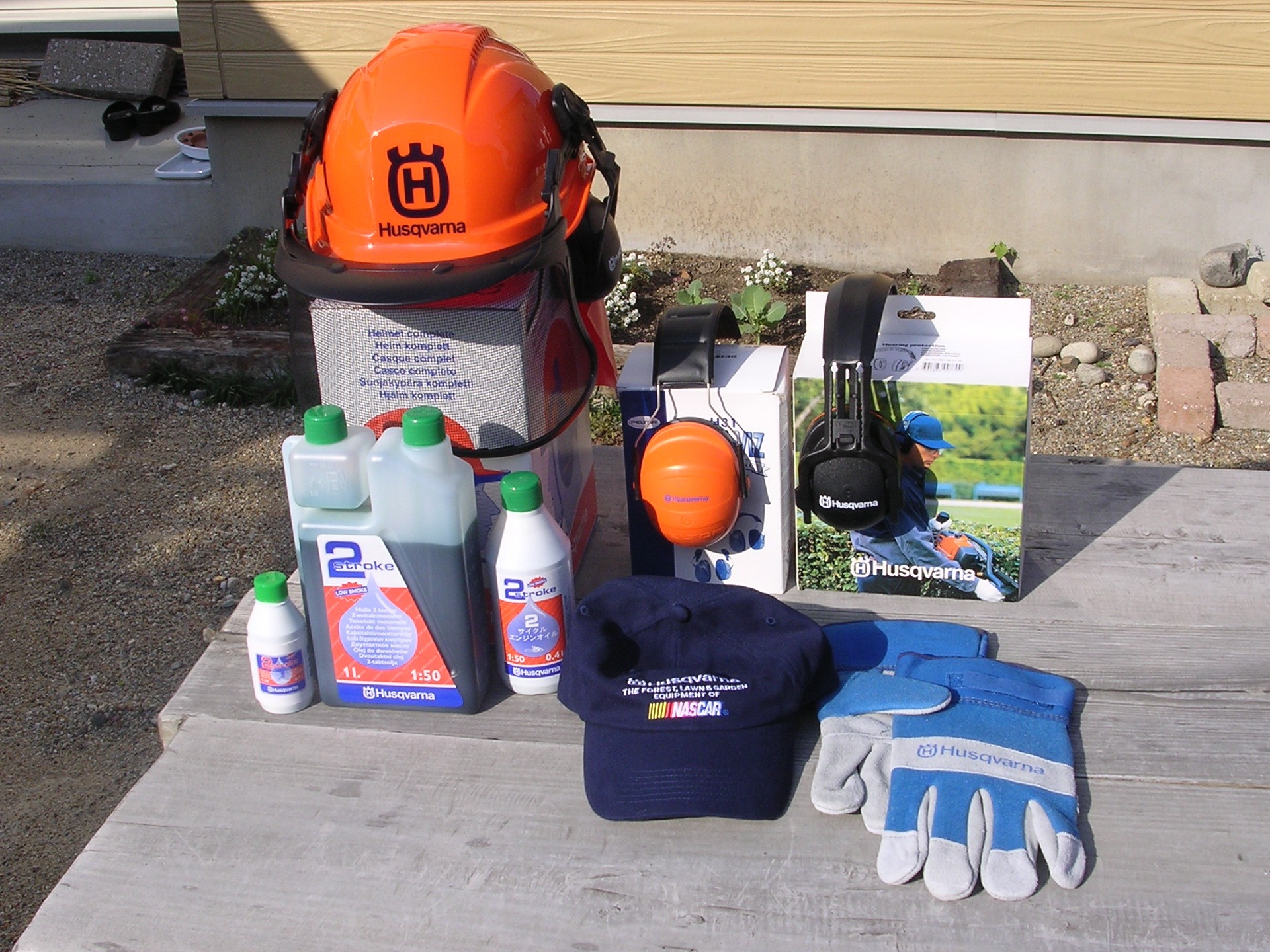 ハスクバーナ製のイヤマフです。黒色にオレンジのラインが入っています。 |