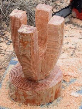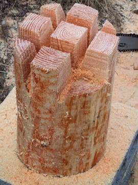 チェーンソーで切れなかった所をを、ノミでカット。ディスクグラインダーでバリ取りをする。