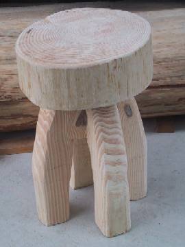 完成。やはり座面はかたむいています。まぁ良しとしましょう。チェーンソーでカットした直後は6.5Kgあった重量も、2週間たったら、4.5Kgにまでなりました。室内においておいたら、すごい乾燥したようです。