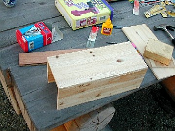 さて、ほぼ完成。あとはニス塗りをして、ふたを蝶番でつければ完成ですが、とりあえず入れておけるので、それはまた後日。 |