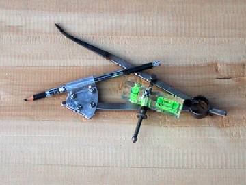 ネットで作り方を検索し、それなりに作ってみました。まず、金属ケガキ用のコンパスが手に入らなくて1度あきらめましたが、ちょっと足を伸ばして、小牧のカインズに行った時に見つけて、迷わず買いました。 そのコンパスを近くの溶接工場に行き、ねじを溶接していただき、水平器を取り付け。片足をディスクグラインダーで切断し、反対の足をコンロで過熱し(本当はトーチか、バーナーが良いが持っていなかったためキャンプ用のコンロで代用)カナヅチで叩いて、外側にそらせる。1mmのアルミ版を加工して、スチールの鉛筆の持ち手を切断した足のほうに固定する。と、まぁこんな具合です。 このスクライバーで、ログテーブル作成中です。 |
